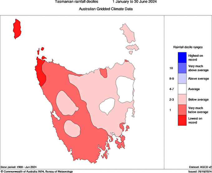This was caused by very much below average rainfall in the states west during the first half this year, with parts of the northwest recording the driest 6 months on record.