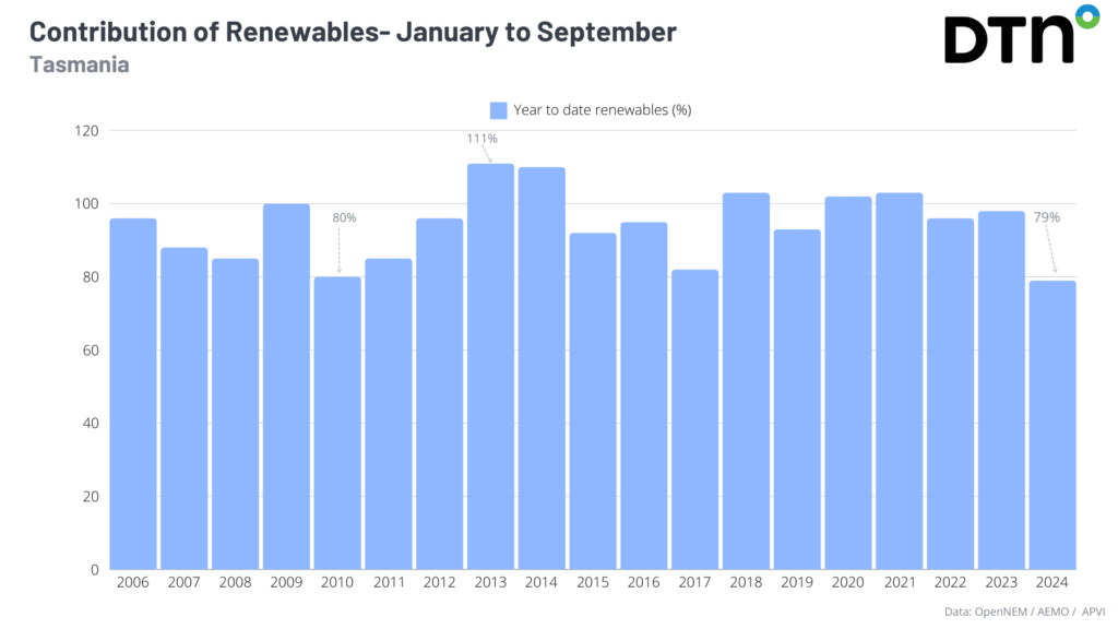 Tasmania’s impressive renewable energy achievements are facing challenges as low rainfall significantly reduces hydropower.