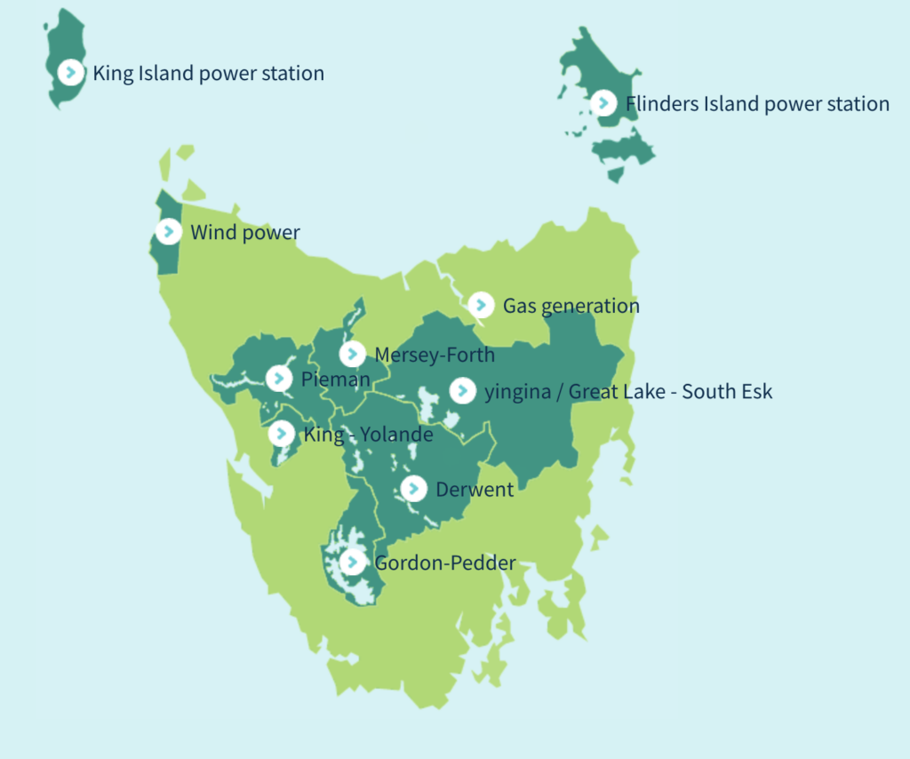 The stations are in six high-rainfall catchments formed by natural river systems, which the power stations and water storages link together.